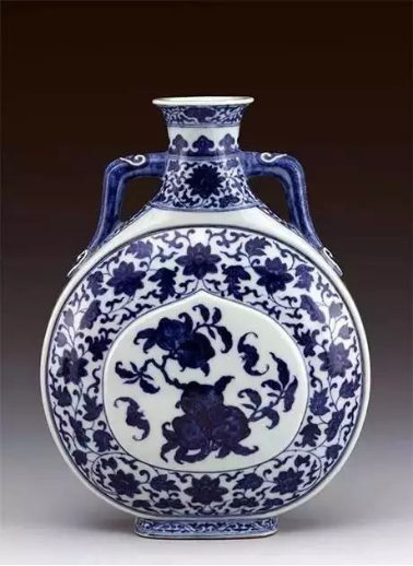 清道光景德镇窑青花福寿纹双耳扁瓶