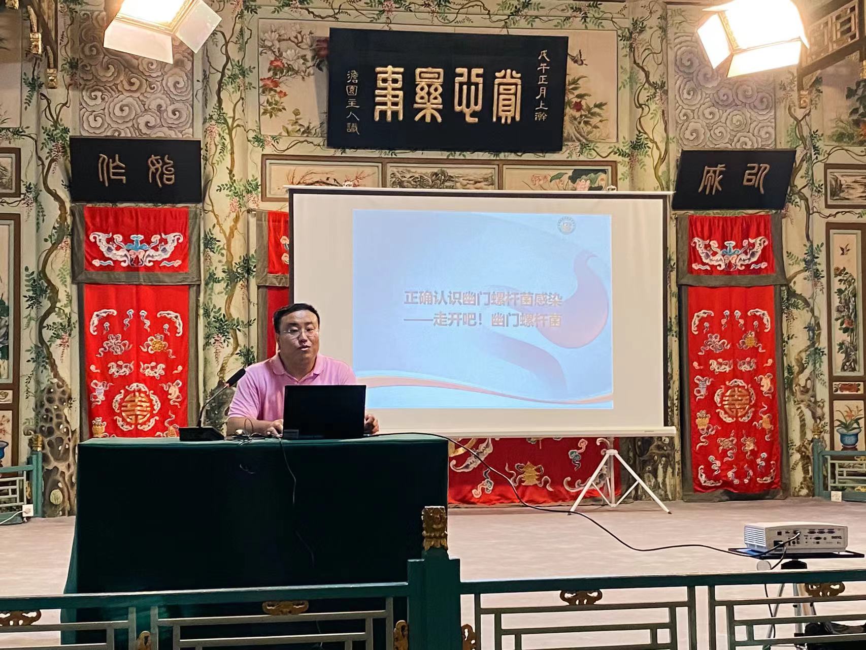 活动中,北京中医医院充分发挥专业特色,消化科刘赓大夫为我馆职工做了题为《正确认识幽门螺杆菌感染—走开吧!幽门螺杆菌》的专题讲座。刘赓大夫的讲座通俗易懂,他用最精炼的语言,以图文并茂的方式为我馆职工上了一堂健康科普现场课,为广大职工普及了正确认识幽门螺杆菌的相关知识,使大家了解了幽门螺杆菌的传播途径和检测方式,及正确的预防和治疗方法。