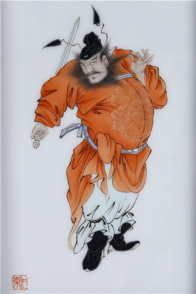 钟馗纳福系列产品之一,根据恭王府最后的府主人溥心畲原作的基础上进行创作的。钟馗被封为赐福镇宅圣君,在右上方还画有一只蝙蝠,寓意福从天降。