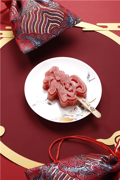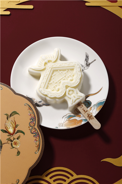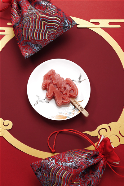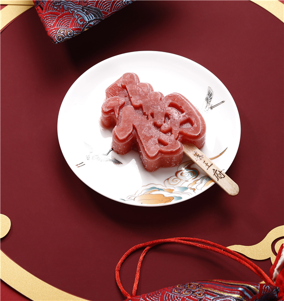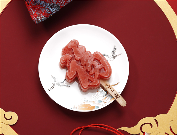 以后罩楼窗花为题材的文创冰淇淋,寓意福庆有余。