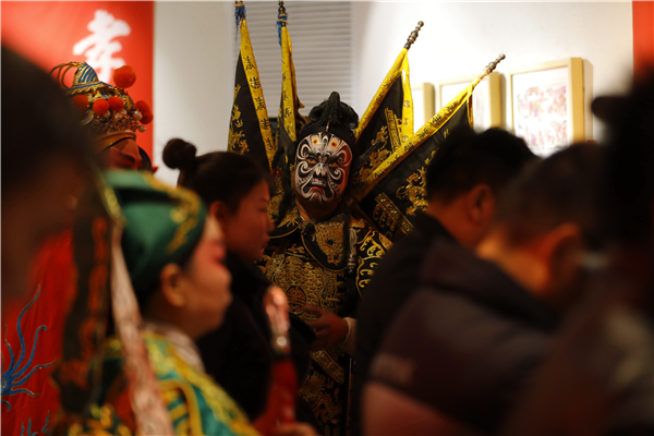 除了静态作品展览之外,在展厅,来自北京、湖南、泰安的皮影戏忻州北路梆子河南滑县的大弦戏、辽宁的鼓乐京剧轮番上演,生动演绎了与此次展览主题相关的四郎探母》《杨门女将》等杨家将题材经典剧目。凸显了我国传统年画和传统戏曲之间“画中有戏”的艺术特色。