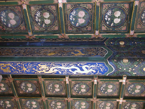 恭王府的建筑上保留了恭王府不同时期的珍贵历史信息。对历史负责,对后人负责,将这些历史信息保护传承下去,是此次府邸文物保护修缮义不容辞的责任。恭王府保留的彩画,不仅形式独特多样,而且具有极高的历史价值和艺术价值。在设计中对存留的老彩画进行了年代鉴别,并根据特点分别进行彩画的修复设计,形成了《恭王府彩画保护方案》。