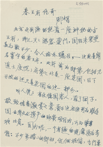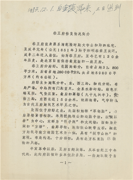 周汝昌是唯一对恭王府的历史、文化、建筑进行全面、系统研究的当代学者,他主张恭王府即《红楼梦》中荣国府大观园的创作蓝本,由于他的奔走呼吁,恭王府的历史文化价值引起了社会的重视,府邸和花园得以完整地保存下来并对公众开放。