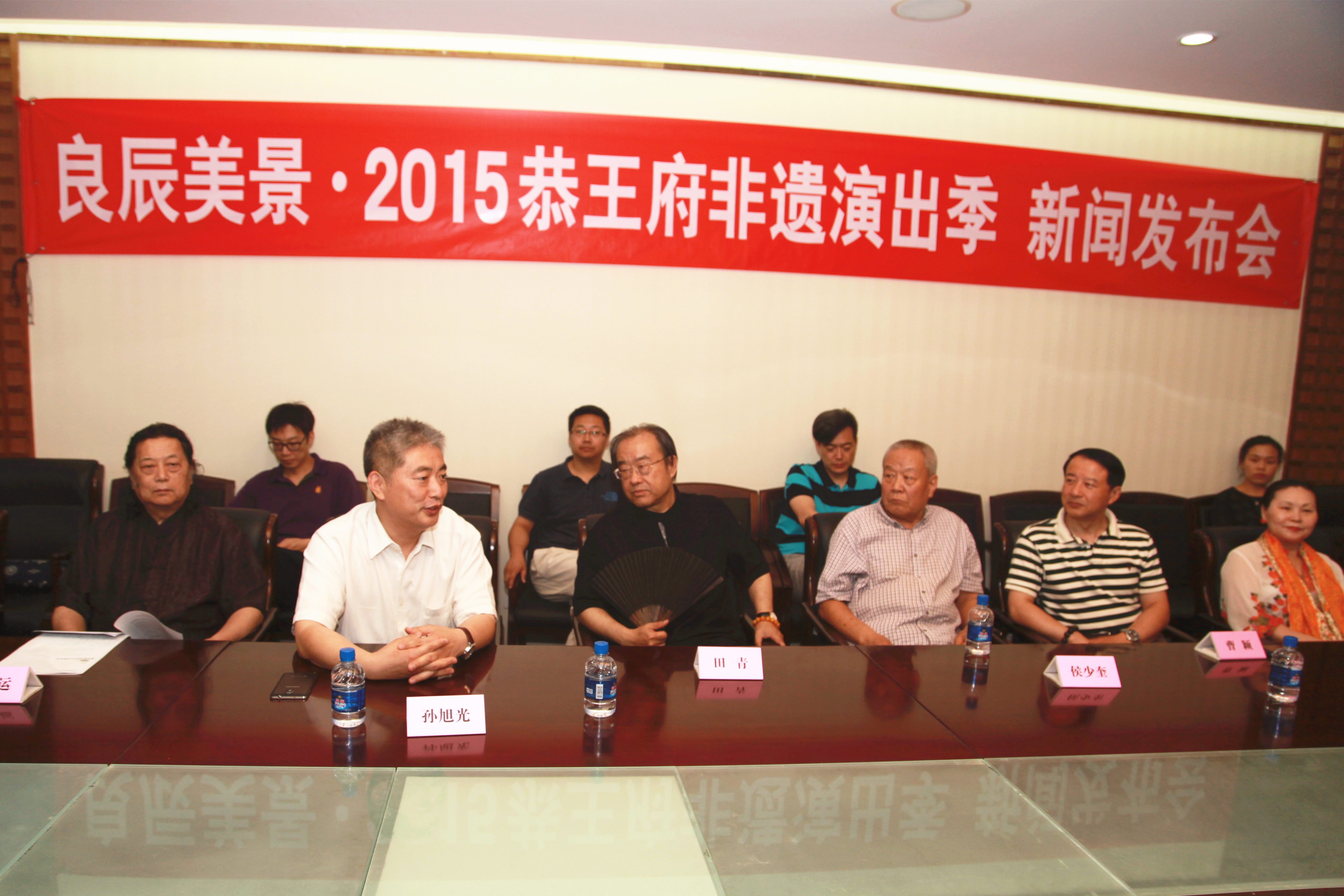 文化部恭王府管理中心主任孙旭光、中国昆剧古琴研究会会长田青、北方昆曲剧院国家一级演员侯少奎、台湾汉唐乐府创办人陈美娥、古琴演奏家余青欣等出席了发布会并致辞。发布会上就昆曲、古琴艺术的传承与发展,台湾南音的历史渊源与创新之路,以及主办方在非物质文化遗产方面所做出的成果进行了介绍。