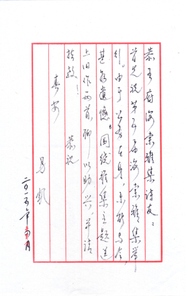 恭王府海棠雅集,缘起于国家命运攸关之时,重现于祖国复兴昌隆之际。自辛卯初春,恭王府在著名学者周汝昌先生的直接倡议下重启“海棠雅集”,便受到了马凯同志的亲切关怀与热情支持,每届都会专门发来贺信及贺诗。至今该项活动已连续成功举办五届,成为诗词界每年一度的文化盛事,受到各界人士的广泛好评。