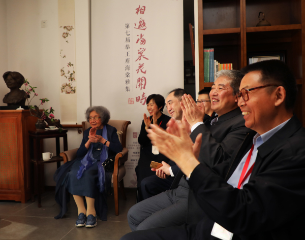 雅集现场,由北京颐和园管理处提供的盆栽海棠花姿潇洒,似锦盛开。在传统的行香礼仪中,吴钊先生用自己珍藏的丝弦唐琴,以一首《忆故人》为雅集拉开帷幕。随后,叶嘉莹先生致欢迎词,回顾了自己一生漂迫,晚年归国的经历;龚克校长代表三万南开师生对恭王府海棠雅集能够在迦陵学舍举办表示欢迎;孙旭光主任不但回忆了与叶先生“春天开花、秋天结果”的友谊,而且向叶嘉莹先生颁发了“恭王府海棠诗社”社长的聘书;陈洪先生以一首《贺第七届恭王府海棠雅集》表达了对叶嘉莹先生、恭王府以及本次活动的美好祝愿。