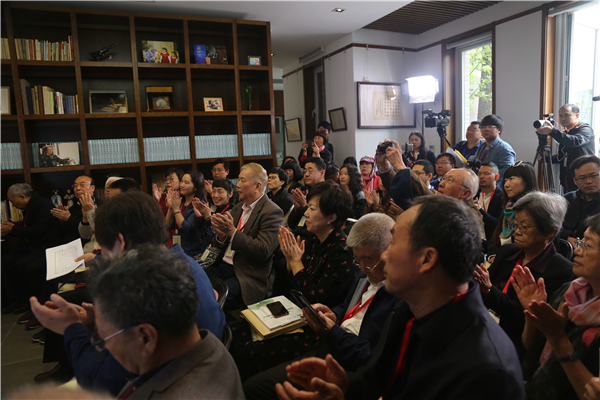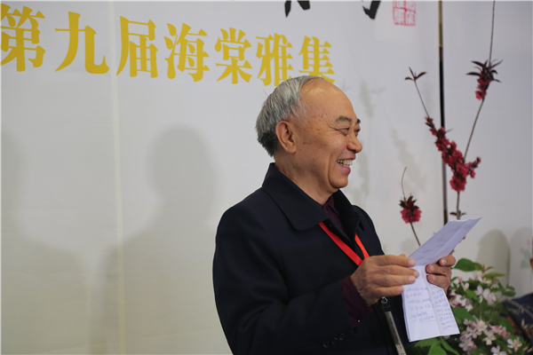 更有远道而来的卫斯理大学东亚系主任刘元珠、淡江大学教授施淑各自分享了追随叶先生学习诗词的往事;《人民日报》记者宋明霞深情诵读了短文《90岁之后的美谁负责》,回忆与叶先生的美丽相遇。中国新水墨画院著名画家仝凌飞将自己创作的海棠画作交由张静女士转赠叶先生。叶先生曾言:“声音里有诗歌一半的生命”,故本届雅集力邀众诗家以吟咏、诵咏或歌唱的形式分享作品,展现中华诗词文化音韵之美。中华优秀传统文化教育促进会秘书长刘琴宜即以现代音乐演唱了杜甫《绝句》《春旺》二诗,梁东、张福有也饶有兴致地演唱了诗词作品,同时伴有笔会交流,并将诗家创作的书画作品留与迦陵学舍,雅集现场气氛热烈。