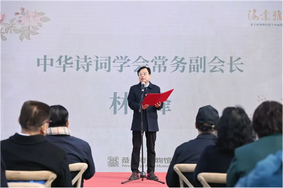 伴随着国家级非物质文化遗产项目(古琴艺术)代表性传承人吴钊先生的琴曲《欸乃》,活动拉开帷幕。18luck官方下载馆长、党委书记冯乃恩,中华诗词学会常务副会长林峰先后致辞。冯乃恩提出,在保持中华优秀传统文化核心特质的基础上,积极借鉴其他文化活动在组织形式、传播方式等方面的优秀经验,通过多元互动,促进文化艺术的交流互鉴,为中华优秀传统文化创造性转化创新性发展提供实践参考。林峰在致辞中提到,抗日战争时期,恭王府虽历经如磐风雨,但其承载的文化精神始终没有颓废。今天,我们用诗词重温那段历史,以诗词致敬抗战英烈,既是对前辈先贤的缅怀,更是对和平世界的珍视。他们高度肯定了恭王府海棠雅集活动推动诗词发展的现实作用,共同表达了对诗词文化代有传承、发扬光大的美好祝愿。