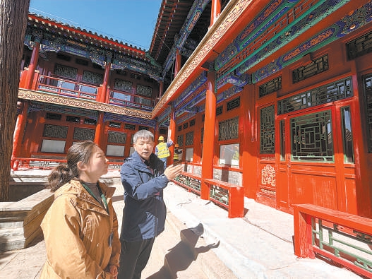 张壮经常受邀参加一些主题宣讲和公益活动,还将自己官式建筑营造技艺倾囊传授给徒弟——新成长起来的恭王府博物馆“80后”“90后”同事。“作为官式营造技艺(恭王府)代表性传承人,我的使命是去发掘和研究更多属于恭王府的故事,传递‘恭博人精神’,将一座‘原汁原味’的恭王府传承下去。”张壮说。