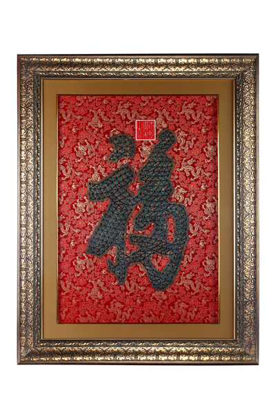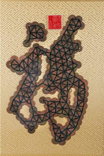 由乾隆、道光、嘉庆三个时期的古钱币精心编制而成,取其谐音钱(乾隆)、到(道光)家(嘉庆)。古钱币总计365枚,寓意一年365天,天天钱到福到。