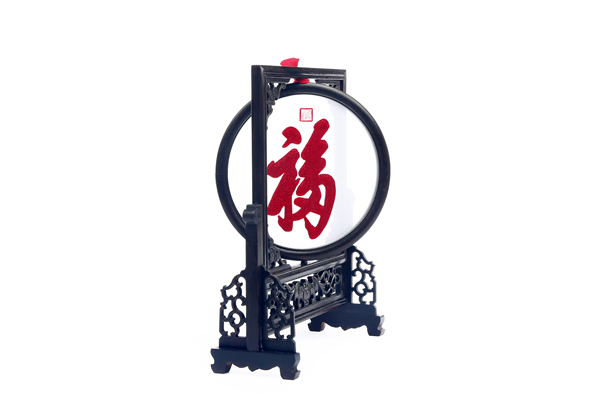 方圆结合的造型,框架上有五只蝙蝠,寓意五福捧福、五福临门、圆圆满满、福运绵绵。