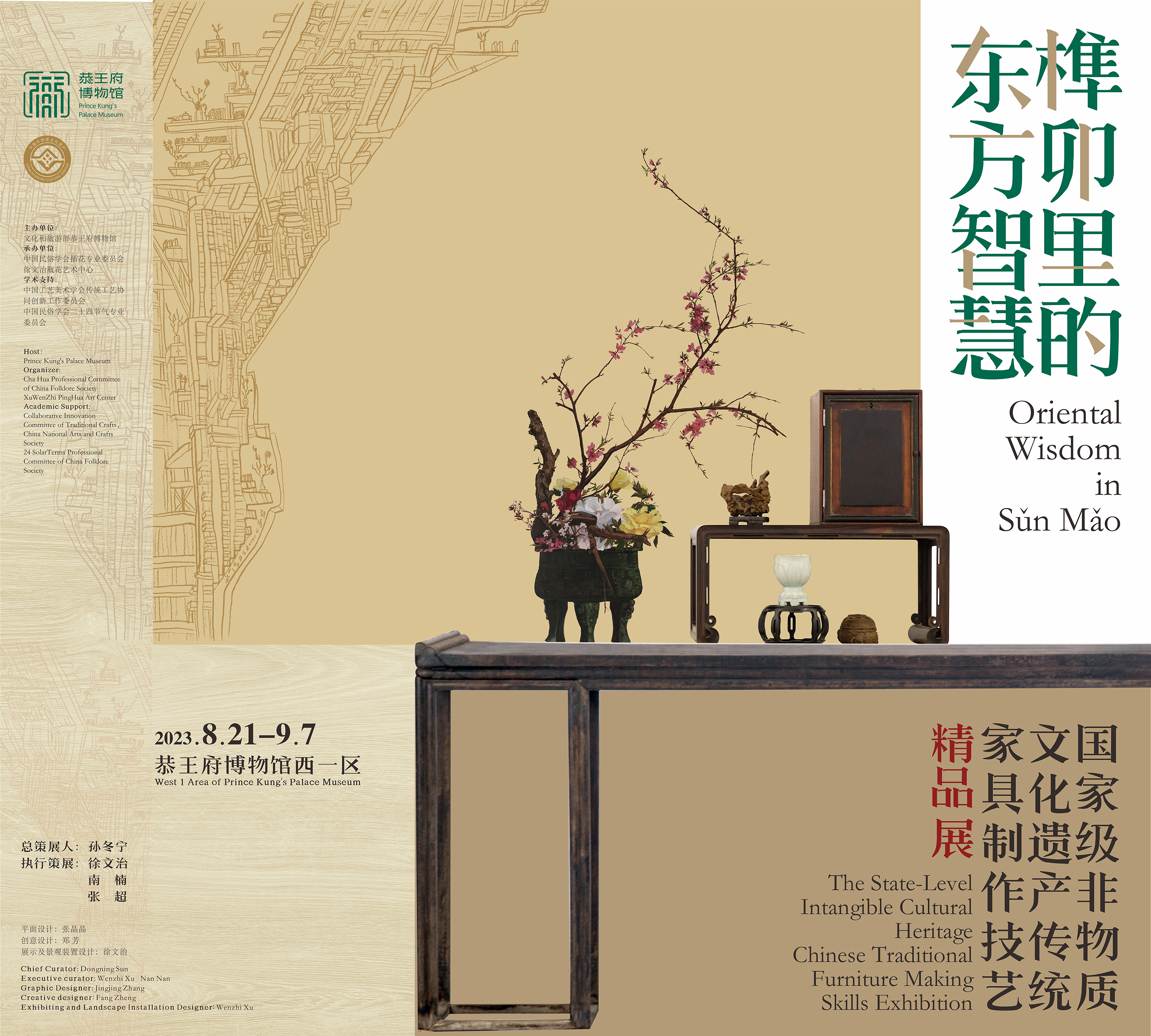 家具不仅是人们日常生活中不可或缺的家居用品,也是人类生活空间的重要组成部分。中国古人所使用的家具蕴藏着独具匠心的时代审美,“广狭长短不齐,置之斋室必古雅可爱,坐卧依凭,无不便适”,家具的使用早已深深嵌入中华传统的生活方式之中。本次展览共分为“东方智慧”“京华甲第”“苏州造物”“岭表华章”“圆辉日常”五个单元,共展出精品家具作品六十余件(套),结合书画、瓶花、古琴、香具和京、苏、广三地特色的器具文玩,以静态展览、动态展示、活态展演等方式,全面呈现三地传统家具制作技艺,探讨家具与空间的构成关系,构建中华生活美学空间,为中华优秀传统生活方式在当代语境的重置提供范式。