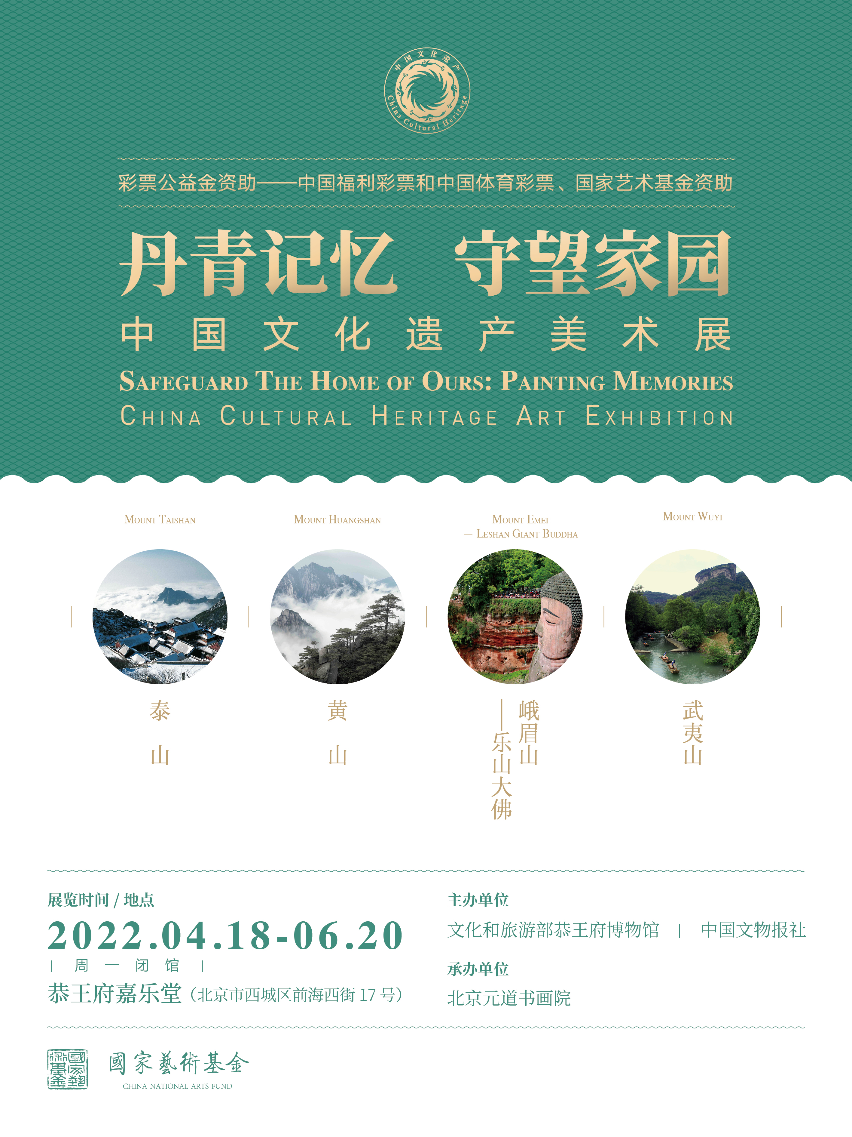 展览内容:展览为国家艺术基金传播交流推广项目,以我国列入《世界遗产名录》的泰山、黄山、峨眉山—乐山大佛、武夷山4处“世界文化与自然双遗产”为题材,展出国画、油画和书法作品60余幅。