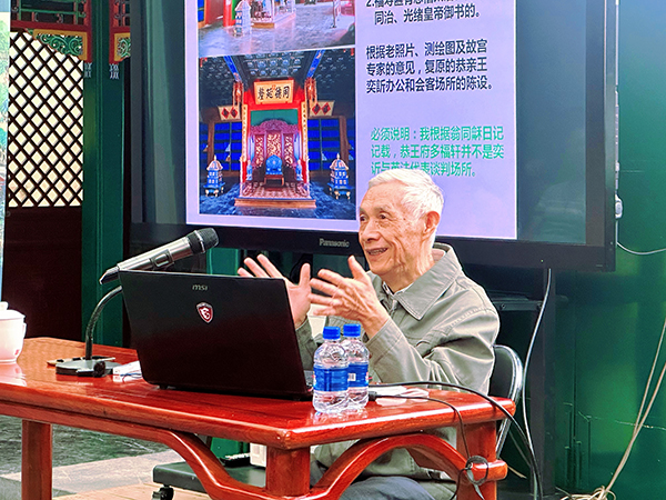 “走进恭王府”讲座多在恭王府博物馆的研学基地举办并面向社会招募公众。首场讲座由中国国家博物馆终身研究馆员,曾担任恭王府顾问、专家组组长的孔祥星先生讲述在恭王府筹建博物馆和府邸修缮过程中,寻觅清代王府历史资料的往事。他从导游错误说法入手,从老照片、实测图、文献记载、专家意见、考古发掘等多角度综合考证,为公众普及王府的规制、建筑、家具、民俗、保护修缮等知识,也为文博工作者提供开展史料工作的方法。观众从中更能够体会到孔先生锲而不舍的钻研精神,以及对文博事业“择一事,终一生”的的真挚热爱。