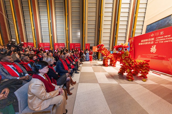 联合国秘书长古特雷斯在联合国总部活动现场通过视频向全球华人致以新春祝福