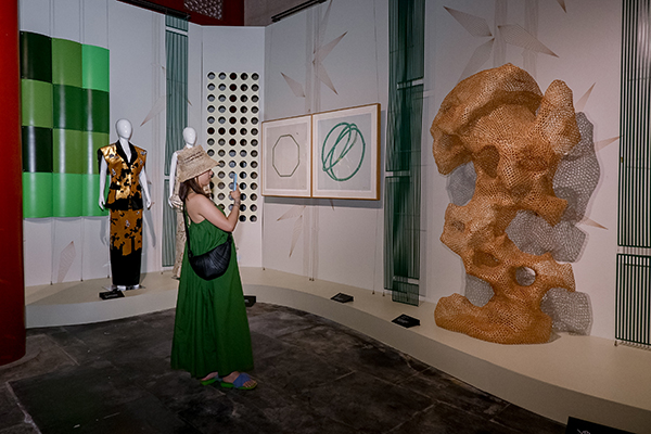 四季轮回,十二月景致流转,自然的时序变化与顺应时节的风雅生活,成为中式精雅生活的底色与韵脚。展览中服装设计师与艺术家的作品呼应着恭王府一年四季十二月的十二种美学符号,反映了艺术家对中华优秀传统文化的时尚解读,展现出中式审美的独特魅力。例如艺术家钱利淮的竹编作品《哇哇叫的太湖石》,源自东方文人传统,展现了非遗竹编技艺的传承与创新;艺术家吴笛笛的《静物-竹》,用几何形状强调竹的“物性”,让传统文人的审美对象有了鲜明的现代性;设计师陈鹏的作品《人生定格》,既扎根于东方文化基因,又以先锋的视角重构现代设计语言,形成风格鲜明的美学表达;设计师马凯的《春园雅集》,通过为山水、春兰和霜色等传统文化元素赋予色彩之美,体现了其对东方生活的洞悉。