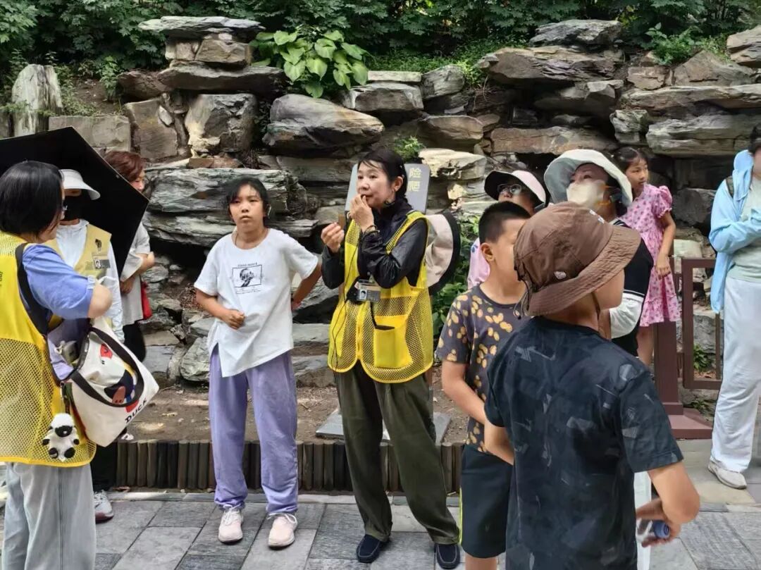 到“西洋门”后,这一家八口并没有随其他观众一起进入花园,而是和李老师继续畅聊,意犹未尽。孩子的家长说:李老师的讲解服务让一家人的参观从“看建筑”升级为“读历史、品文化”,更深刻地理解了一座王府的变迁,也就是一段历史的缩影。一家人热情邀请李力老师合影。于是,就有了这张照片。它不仅是李力老师暑期服务的珍贵记忆,更成为激励她终身学习做好志愿服务的不懈动力!