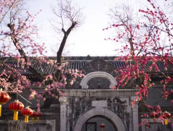 与《红楼梦》有着不解之缘的恭王府,每到冬日,白雪、红梅、琉璃瓦相映成趣,为游人营造了一个色彩斑斓的书画意境。尤其是屋顶那一片片翠绿的琉璃瓦,经历两百多年的风霜雨雪和岁月侵蚀,依然色泽犹存、流光溢彩。