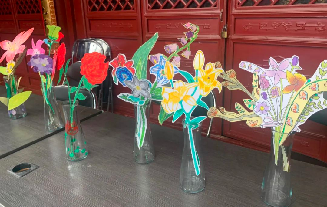 在《创意插花:溥儒画中的花花草草》课堂上,学员们参考溥儒的花鸟画,创作一组或多组插花作品,呈现既有绘画意味又有装饰效果的艺术作品。