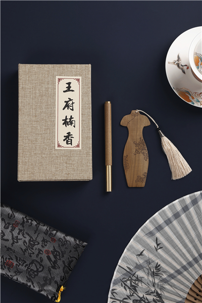 笔杆和书签均为金丝楠木材质,经过12道工序手工打磨雕刻而成,上面雕刻牡丹花,寓意旗开得胜、富贵花开。