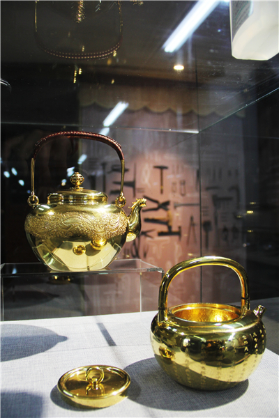 此次展览从“挑行囊、走夷方”的叙事说起,百余件展品惊艳亮相。在“匠”与“器”中向观众介绍了鹤庆银器锻制技艺的历史及传承人的代表作品,之后在展线中穿插了“小锤敲、精雕琢”的动态空间,用“具”与“技”生动还原银器锻制所使用的工具及整个技艺流程的活态文化空间,展厅中还构思新颖的用银制茶具打造出一个现代茶室休息区,使人身临其境体会到了近年来传统工艺融入现代生活的非遗保护路径。