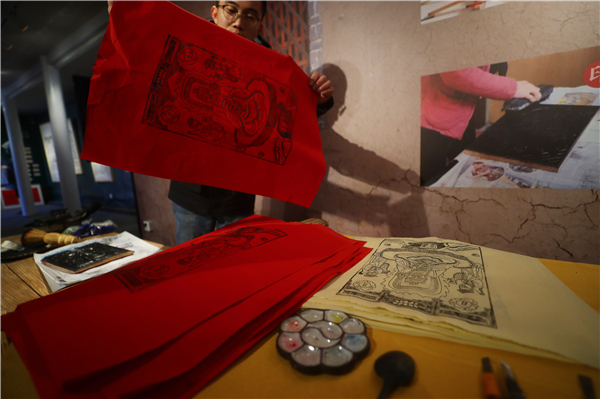 此次展览中,选取展示了滑县木版年画中神像题材的老年画精品和传承人代表作品,并以线稿和彩稿对应的方式,展示滑县木版年画中祖宗轴题材的代表作品。老年画12张、传统版印年画35张、传统年画木版20块。国家级非遗传承人韩建峰先生现场印制年画,并向观众展示相关工具、印版等,让观众现场体验年画制作。