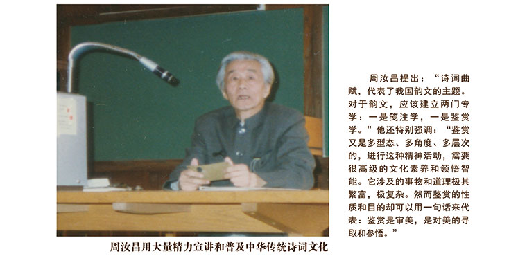 周汝昌在诗词方面所下的功夫,大量用在宣讲和普及民族传统诗歌的工作上,以详备的笺注、精审的解析,教会人们如何去欣赏中国古典诗词,竭力甘当“针度”和“津梁”。