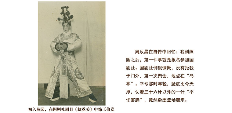 1939年,周汝昌以高考第一名的成绩考入燕京大学西语系,主修英文。然而这一年,天津发了大水,周汝昌因此不能按期入学,至第二年秋天才正式赴燕大就读。学习期间因成绩优异,文学院批准了“全免”奖学金。然而充满朝气的求学之路仅仅过了一年,1941年太平洋战争爆发,燕京大学被迫停办,周汝昌也因此不得不暂时离开了心爱的校园。