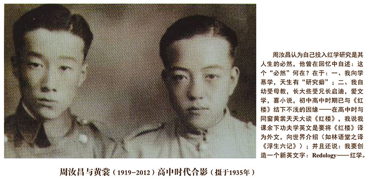 周汝昌少年时期即读《红楼梦》,对书中的情节场景总是念念不忘。他的母亲李彩凤珍藏着一部《石头记》,年幼的周汝昌经常听母亲讲述《红楼梦》中的故事、描绘大观园的盛景。那时周氏在咸水沽的旧居恰有一座花园,母亲回忆的家族旧事总能引发出与《红楼梦》的联想。家庭的熏陶和浸染无形中播下了深远的“缘”的因子。