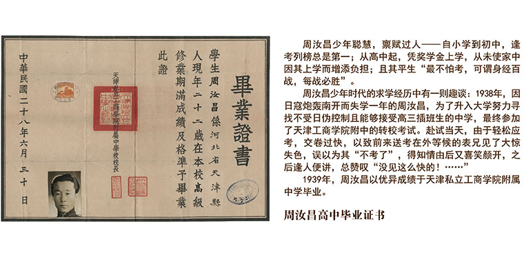 周汝昌1918年出生于天津咸水沽的书香世家,祖父周铜,清末捐“同知”衔,父亲周景颐,为光绪年的末科秀才。周汝昌在家中排行第五,最为年幼,又因其自小聪敏过人,读书过目不忘,颇得疼爱。从小学到初中,周汝昌每学期大考列榜,都是第一名,遂得绰号“铁第一”。