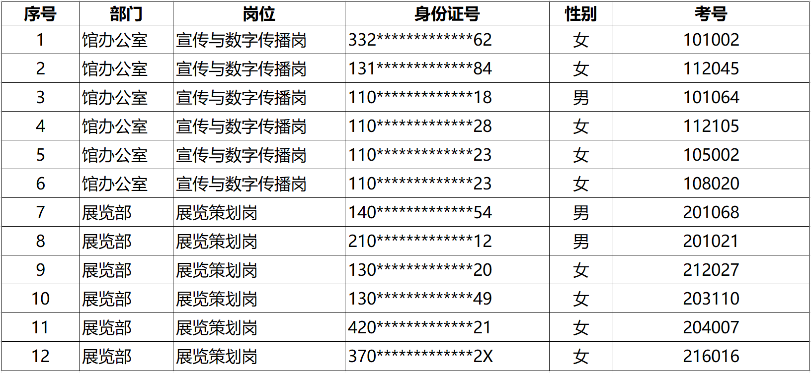 按照我馆2025年度应届高校毕业生公开招聘工作安排,现将入围面试人员有关信息予以公示,公示期为2025年5月29日至6月5日,公示期内如有问题可向我馆人力资源处反映。