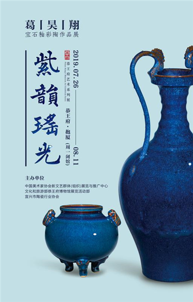 展览展出葛昊翔的宝石釉彩陶作品60件,艺术家将紫砂的材质、均陶的釉色、青瓷的质感、彩陶的造型融于一炉,借鉴宋代五大名窑清淡含蓄的审美特征,创造了天然宝石入釉和紫砂材质结合的特殊审美情趣。