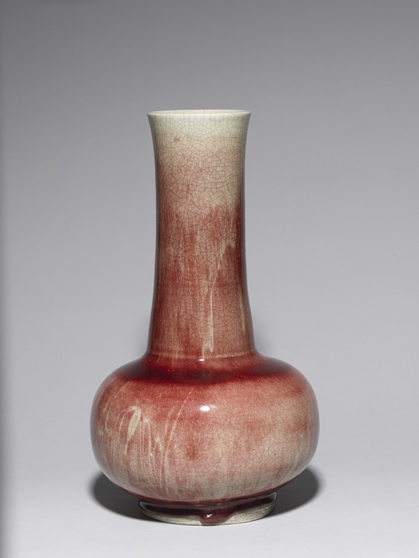 这种类型瓷器最早出现于清康熙年间,是由当时江西巡抚兼景德镇督窑官朗挺极仿照明代永乐、宣德时期的祭红瓷器所创烧。